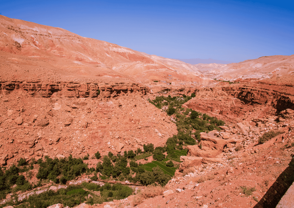 Wake up early to catch the serene desert sunrise. After a hearty breakfast at the camp, depart Merzouga by 4×4 to begin your journey toward Marrakech, with several stops along the way.